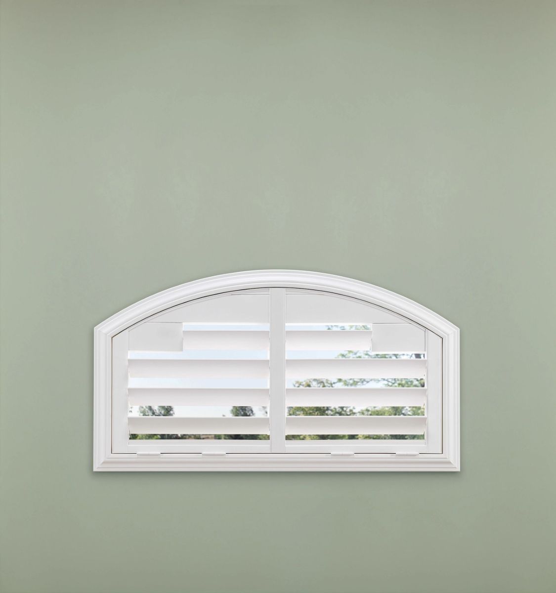 Palm Beach shutters offer fixed forms that can be customized to fit some of the most unusual and challenging shaped windows. These durable, moisture resistant polysatin shutters will add architectural interest and can be mixed with other window coverings in your room.
