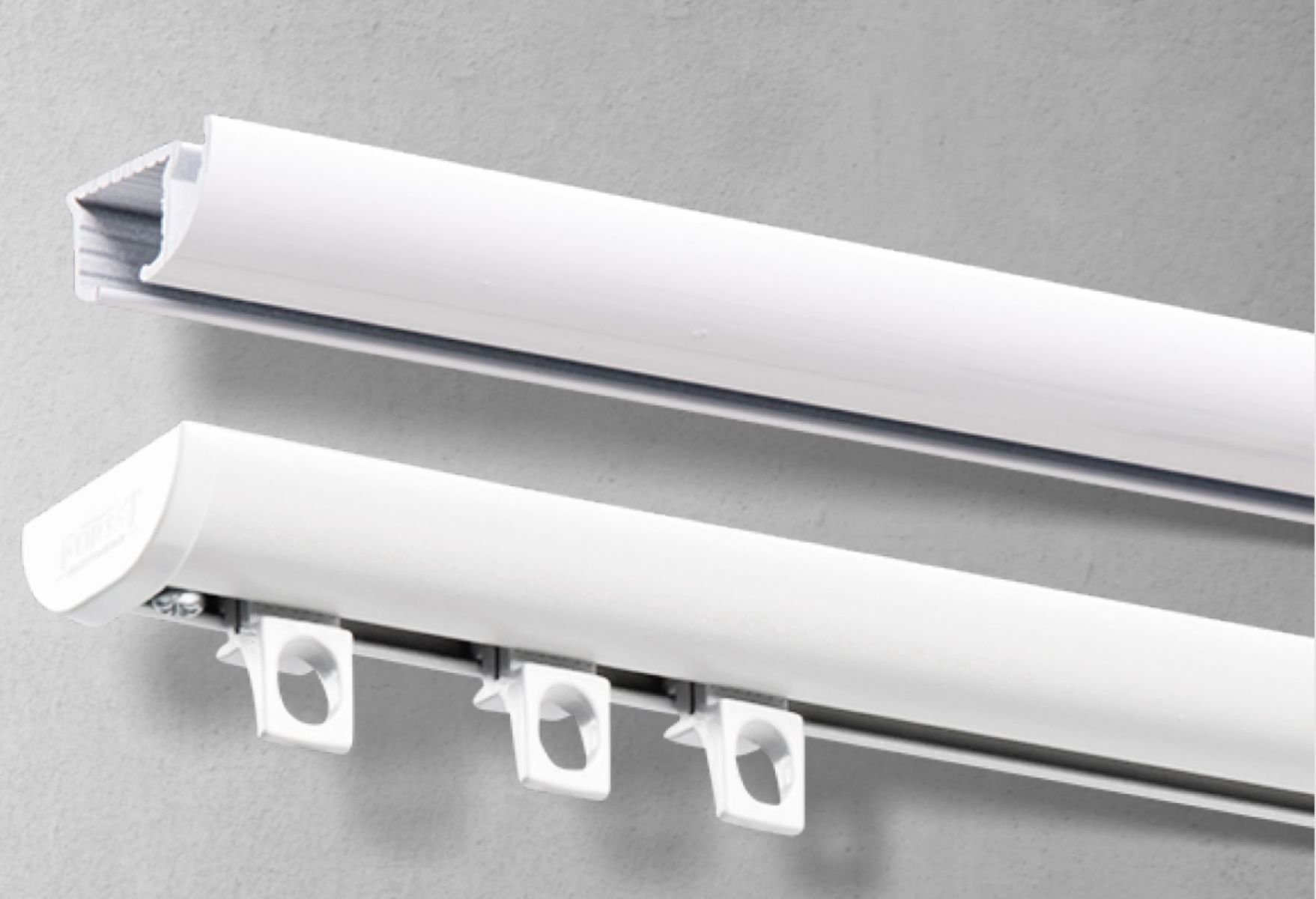 A DS track, or Design System track, is a type of curtain track system perfect to use for when the focus is on the drapery and not the rod. It has a compact design and drapery will easily traverse across the track. DS tracks typically come in white or black and are made of aluminum. They can be wall or ceiling mounted, offering a stylish and functional solution for hanging drapery.